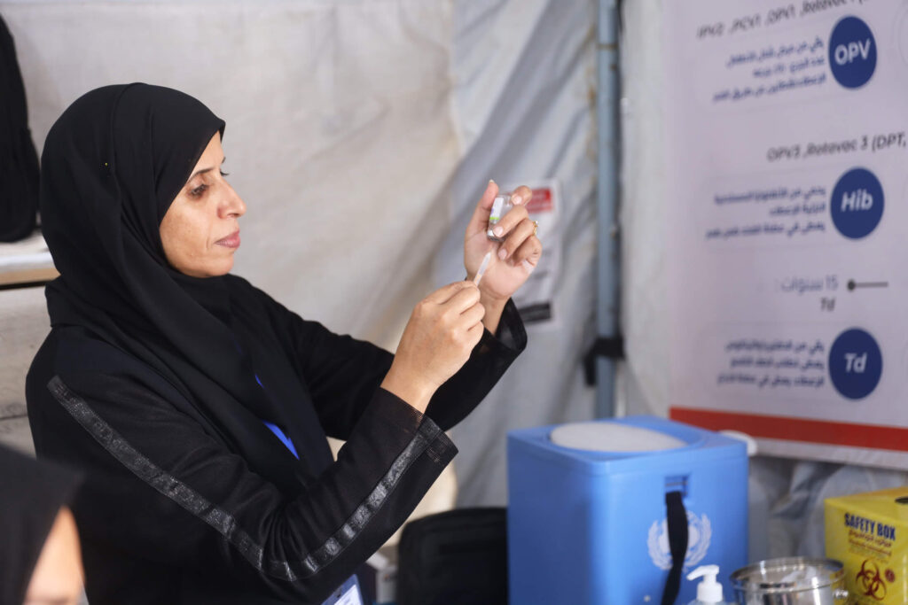 The humanitarian crisis in Gaza has displaced more than 80% of the population and limited access to healthcare, food, water, electricity and other essential services. Security risks and a fragmented health system have left many thousands of children without lifesaving immunisations. According to estimates, one in five children under 3 has either missed their vaccinations or is zero-dose—putting them at risk of vaccine-preventable diseases.